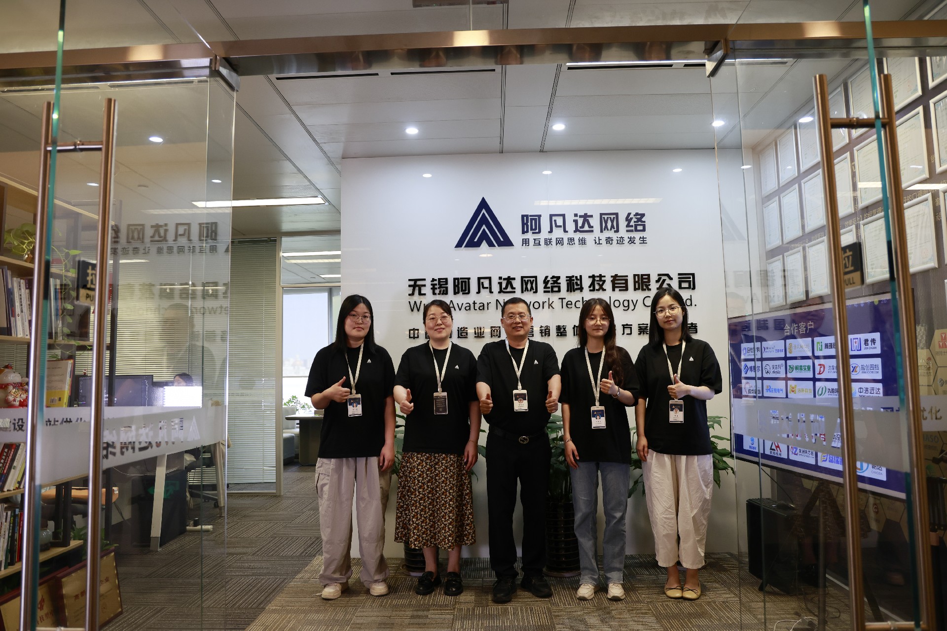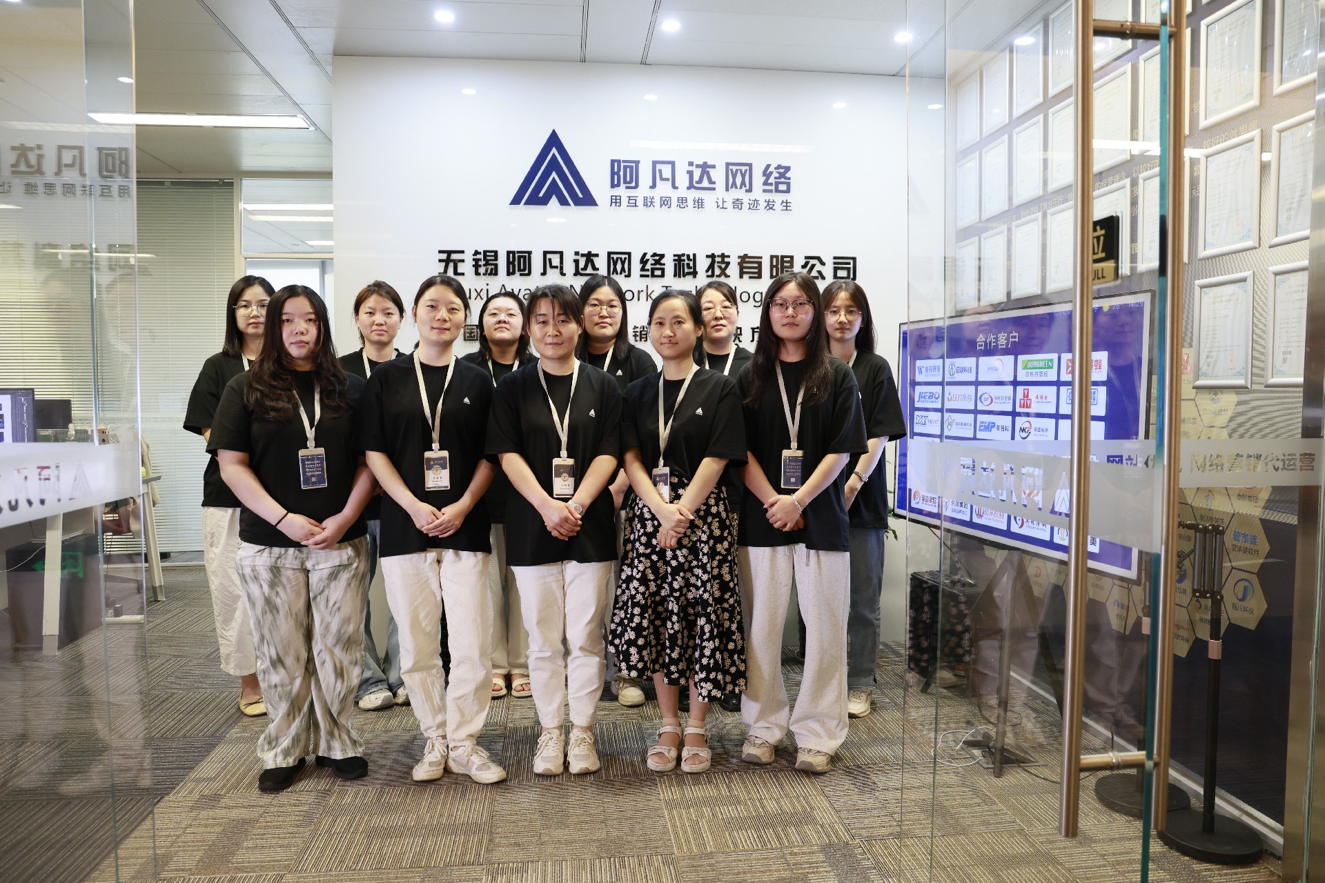 無錫阿凡達網絡為全體員工定制了黑色夏季工作服,胸口左側印有公司LOGO,并組織拍攝了團隊大合影。統一的深色著裝與簡潔的LOGO標識相得益彰,鏡頭前整齊的隊列定格了專業與活力并存的團隊風貌。