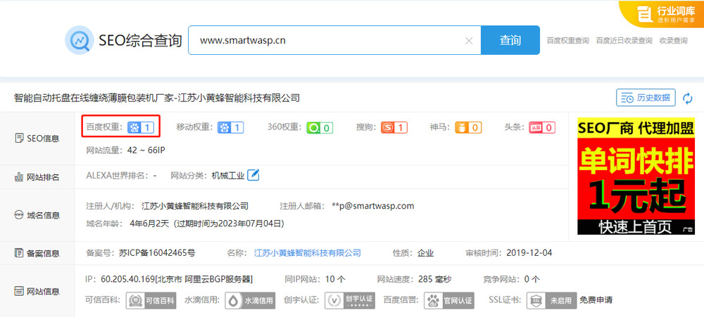 江蘇小黃蜂智能纏繞包裝設備營銷型網站SEO優化案例展示